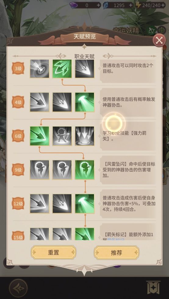 职业天赋路线:由于神器流的角色仅限弓手,只用展示弓手的天赋点取路线就行(篇幅有限,见图6)