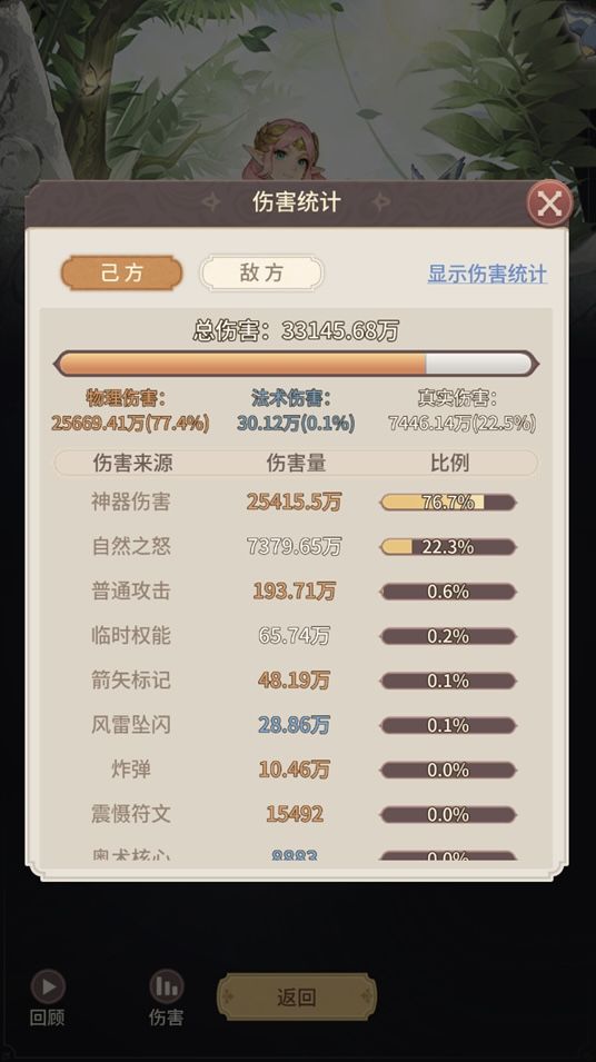 当然,我们今天所介绍的“逛该输出流”就是以神器高频协击,造成高伤害为基础构建的一个流派,这个流派全程一根筋养神器,角色天赋什么的反倒成了辅助。可以说是神器拿了mvp,冒险者只要有手躺赢就行。(图4这个伤害占比,谁是主c懂得都懂)