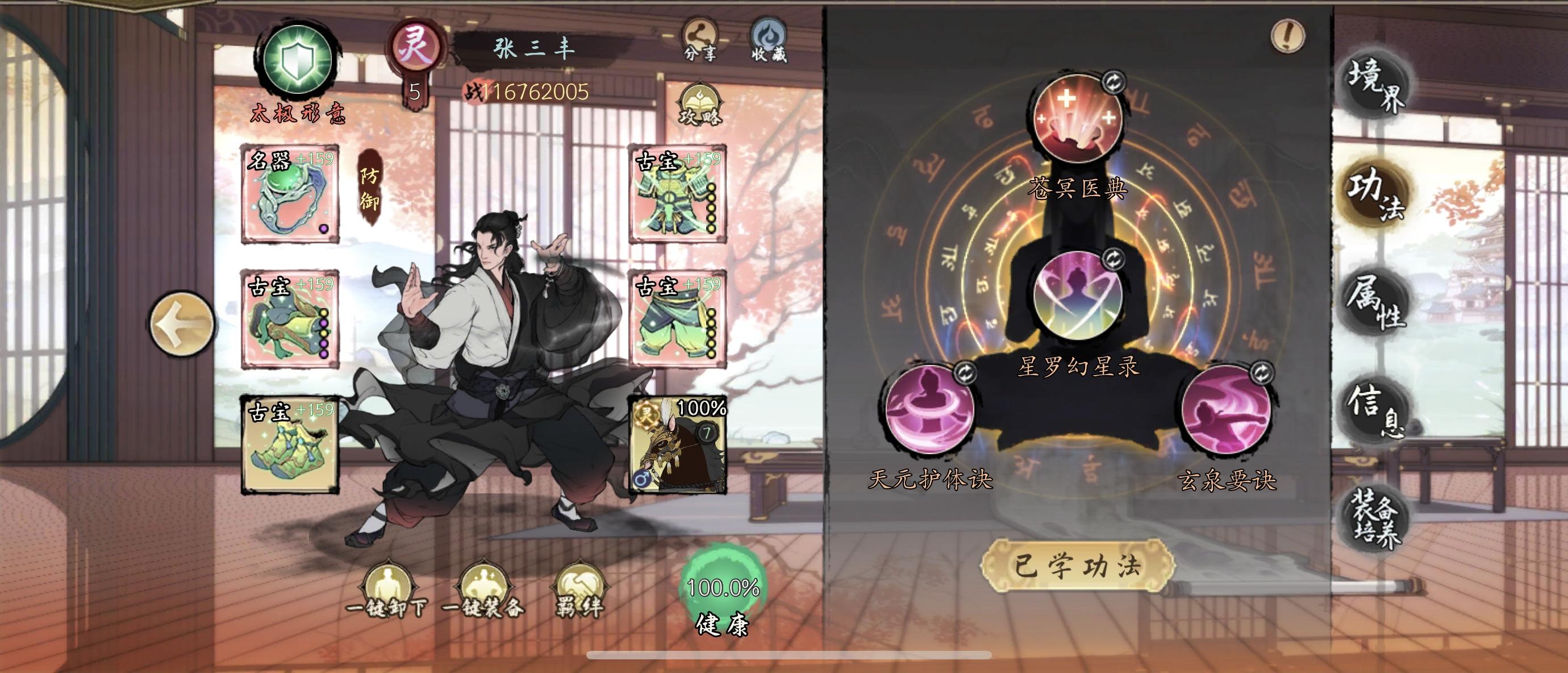 再看武学的词条 生命加成 治疗加成 护体加成都叠加生效 都是对张三丰有实战影响的面板提升 而不叠加的且必带的外伤减免词条在玄泉要诀上 也只有一个 完美生效