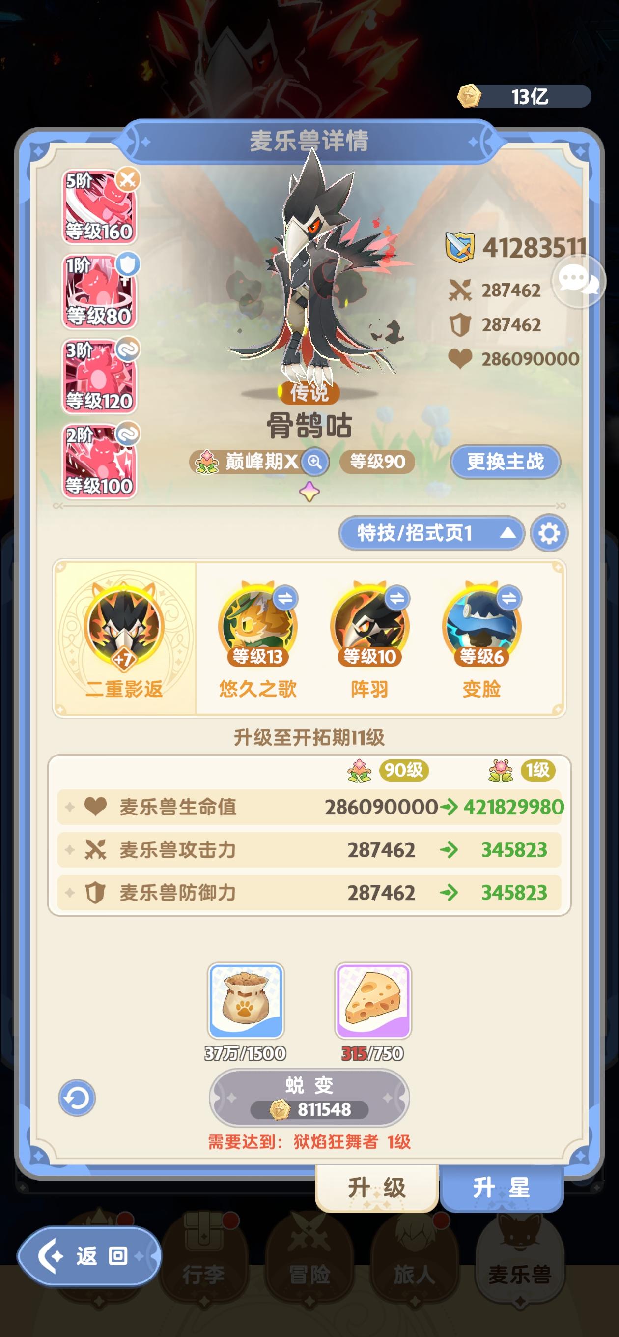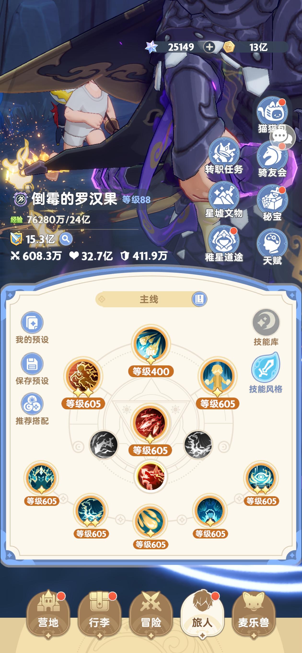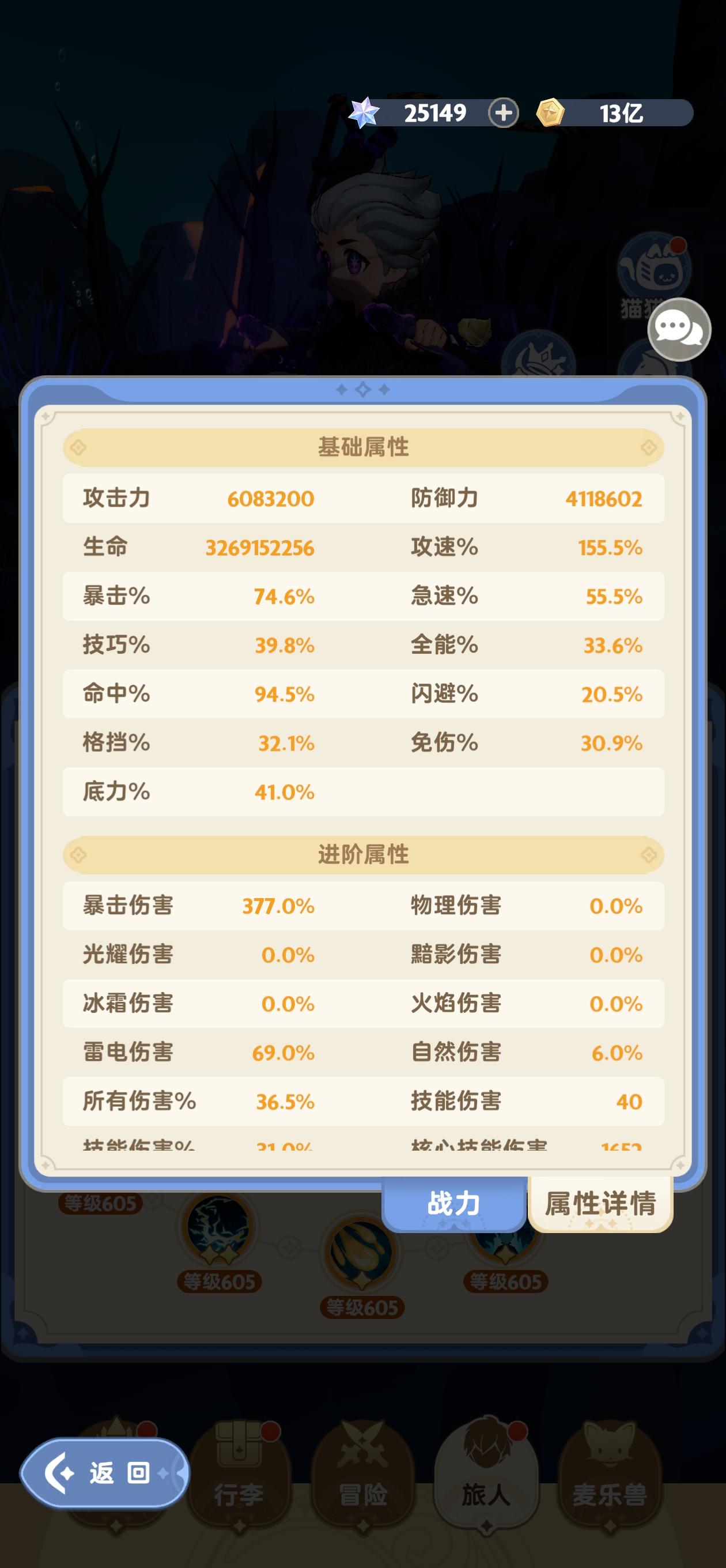 上一次0.5垓是在6月7日,历时17天,87级点出雷电天赋15%提升后,终于换垓单位。71级升了彩1宠,阵羽10,技能全金1-2星了,其他配置不变,没换新装备,所以攻击力只有608w,命中超了2.6,没换装备懒得改了。