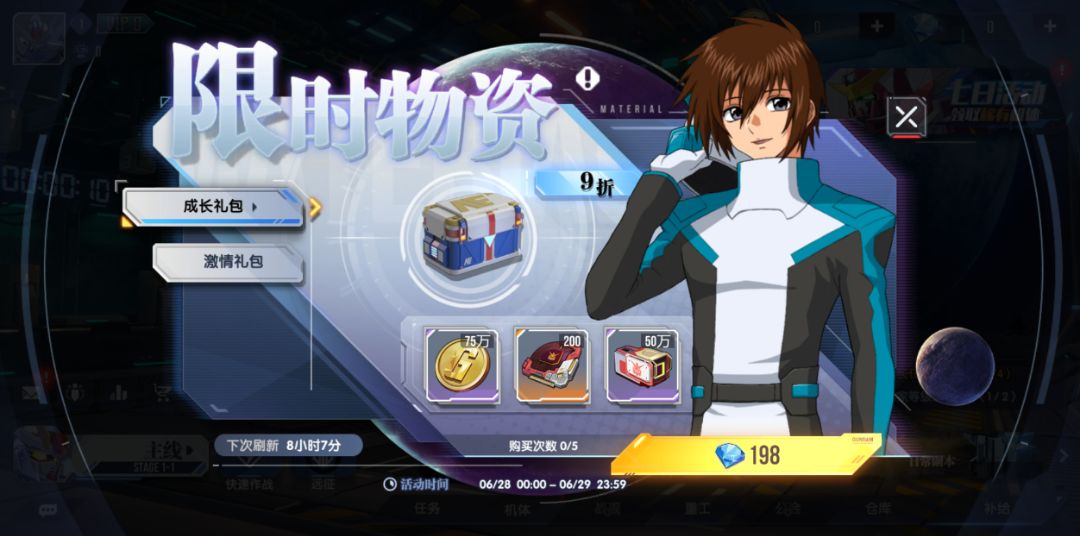 6月28日指挥官可以用金币和钻石以优惠的价格购买大量机体培养素材,加速机体养成。