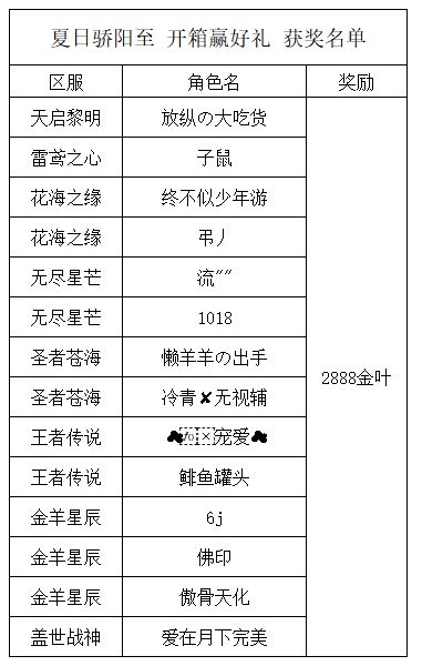 恭喜以下获奖玩家,奖励将于7个工作日内发放,如有疑问请及时联系客服~玩家可自行将相关道具进行清理。