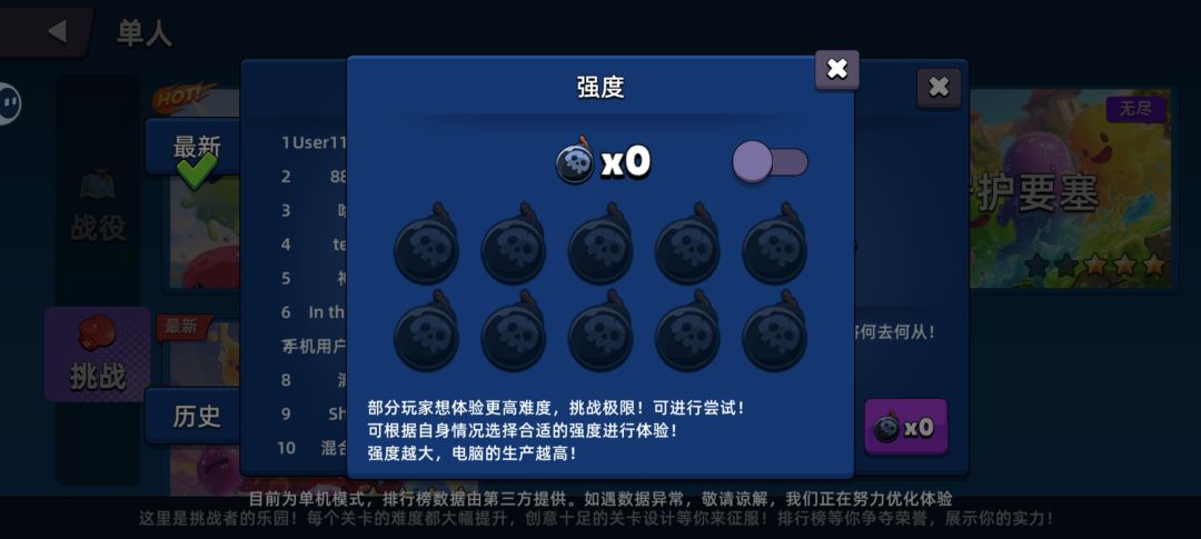 * 战役挑战都能打开独立的强度设置,炸弹10!!恭喜你,已经掌握了游戏的终极密码!~