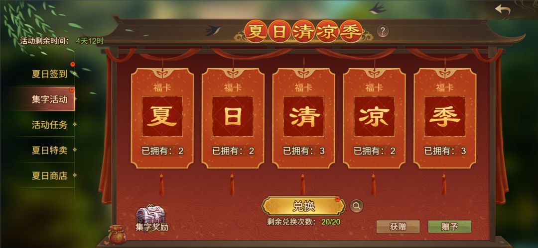 1、通过 夏季签到、活动任务、好友赠予 的方式可获得“夏日清凉季” 中的任意福卡;