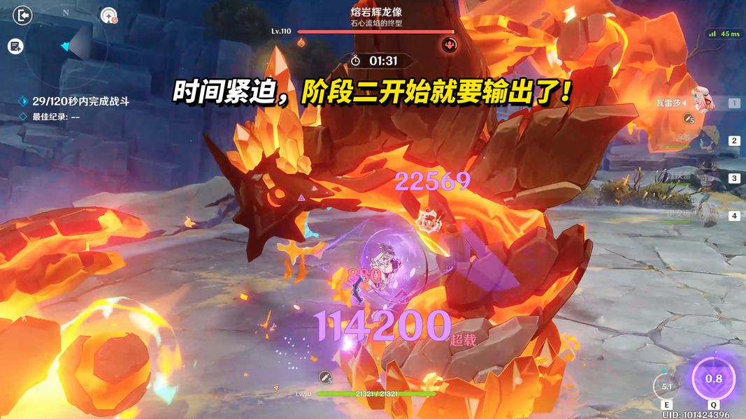 进入阶段二「熔焰之龙」全程自挂火,除火抗继续维持200%抗,其余元素抗性降低至45%。挑战是限时关卡,时间宝贵,阶段二开始正常输出!