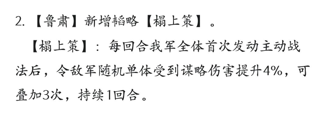 解读:6.24日版本更新,鲁肃新增了韬略“榻上策”,提高了“孙鲁瑜”体系的输出能力
