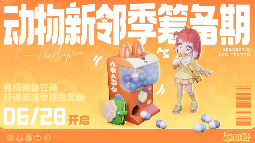 本次动物新邻季筹备期将分为两个阶段。完成第一阶段【灵能逸散调查】相关内容,可获得水豚泡温泉灯、星光焰火等奖励;完成第二阶段【居民意见征集】相关内容,可获得狐狸小型扭蛋机家具等奖励。