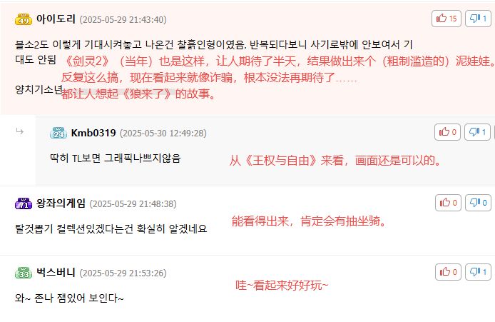 韩国玩家评论截图:质疑声盖过欢呼声