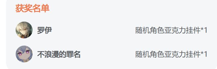 恭喜以下导演在本次活动中获得【随机角色亚克力挂件】*1~
