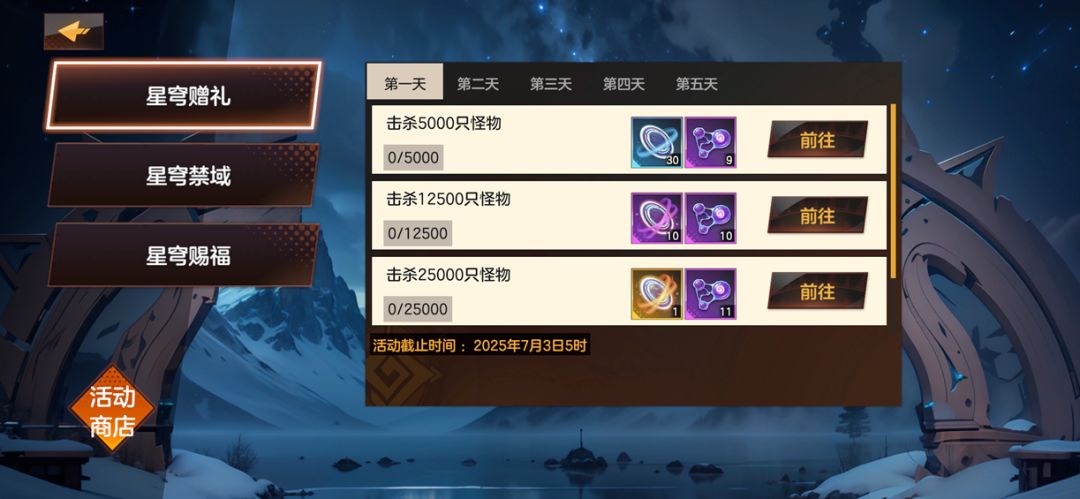 活动期间,冒险者按活动天数可解锁不同天数的任务,完成任务可获取奖励道具。