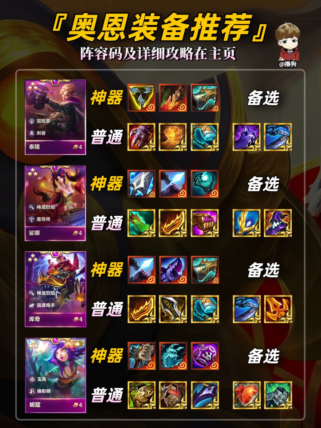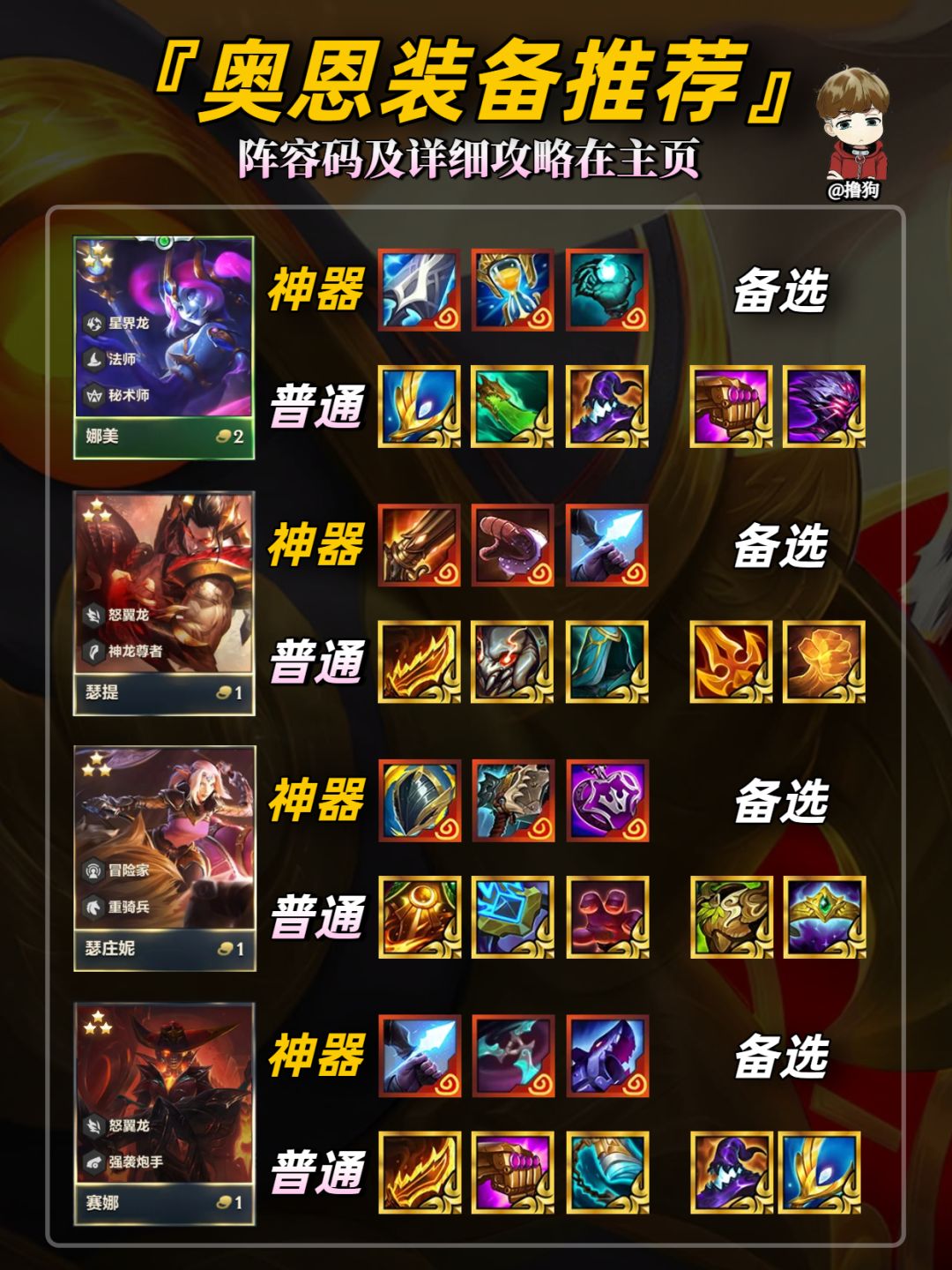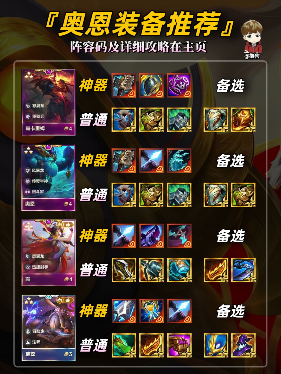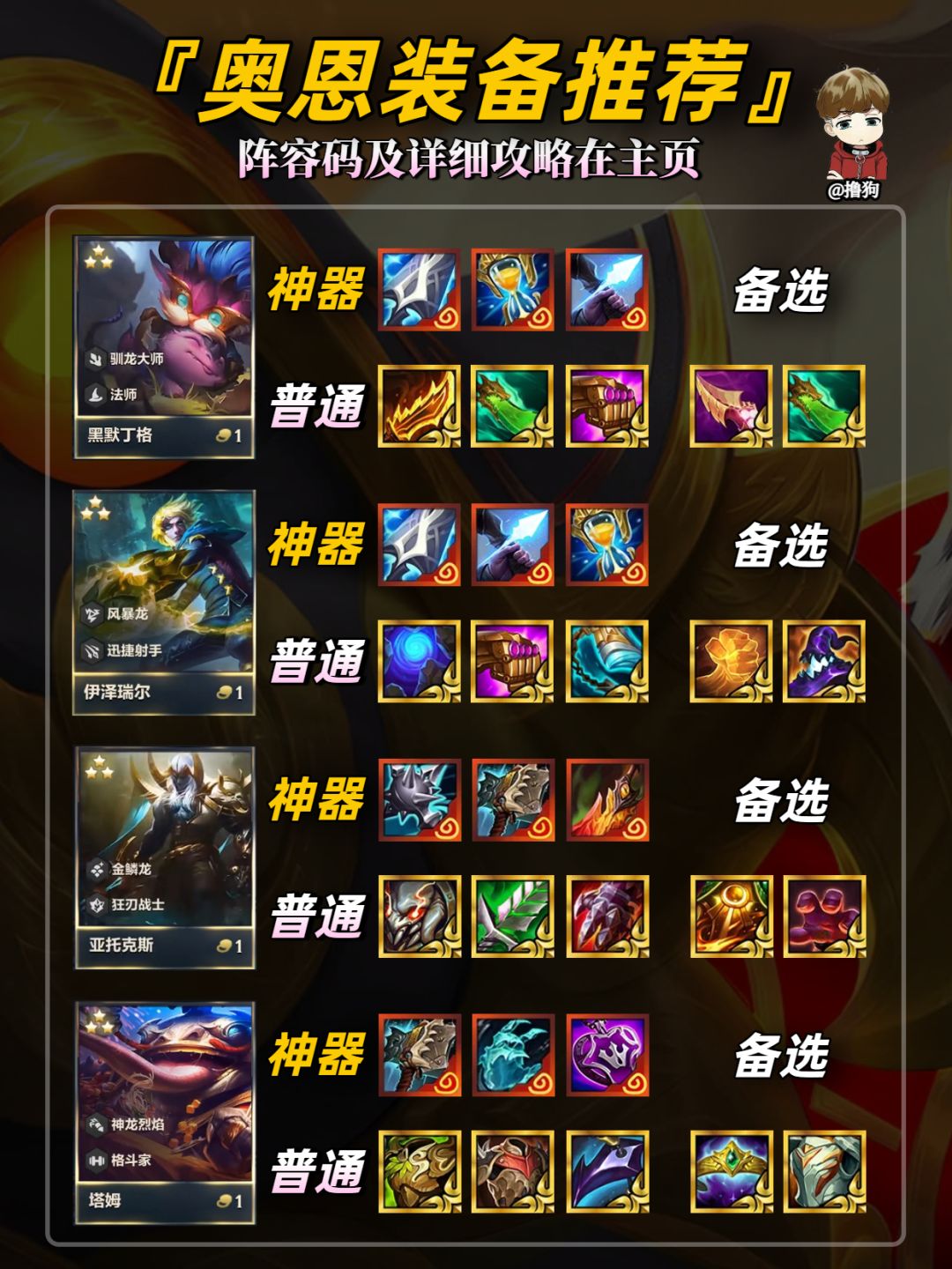 公众号【爱下棋的撸狗】有全部阵容攻略及代码,每日更新阵容榜单,下棋攻略