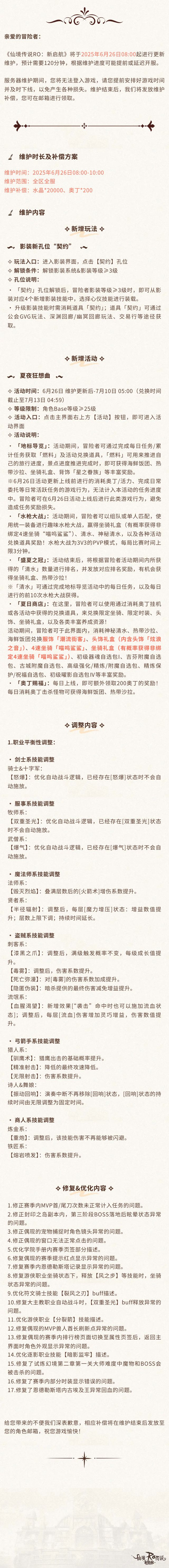 更新公告 | 6月26日更新维护公告