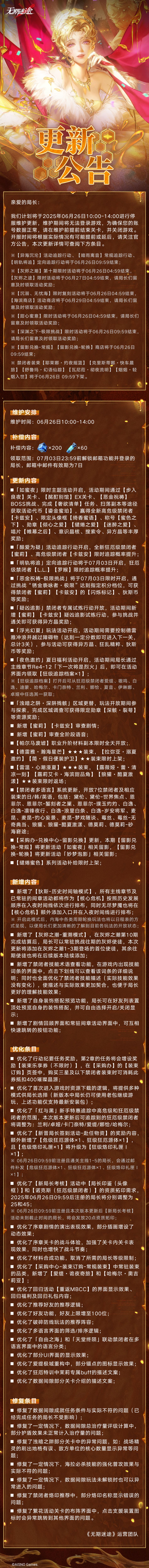 【公告】丨06月26日停服维护更新公告