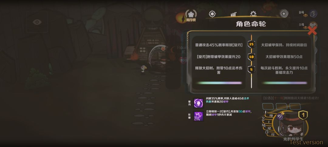 4.镰刀人的被动技能描述错误,一次旋刃只能添加10点破甲,没有20点。
