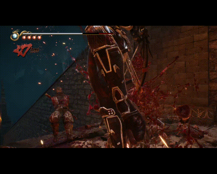 当敌人的架势槽被打满后,玩家可以通过“超级冲击”处决敌人,处决动画取决于角色当时的输出风格,也由敌人当时的位置和姿态决定(颇有故人之姿的饭纲落.gif)。在整个处决发动过程中,敌人都会陷入相对静止的状态(但远程投掷物貌似不会),而角色也会进入无敌状态,也就是说,玩家实际上可以利用这一点来逃过一些来不及反应的攻击,进一步提升容错率,让角色在高难度下能够走得更远。