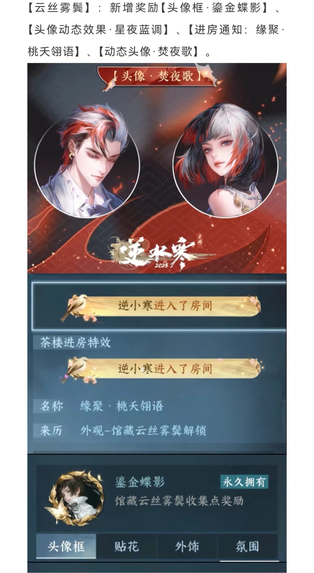 新赛年国色头像,新增动态头像,本周必看赛年重置细节,全新绝技“烬海焚莲”外观!