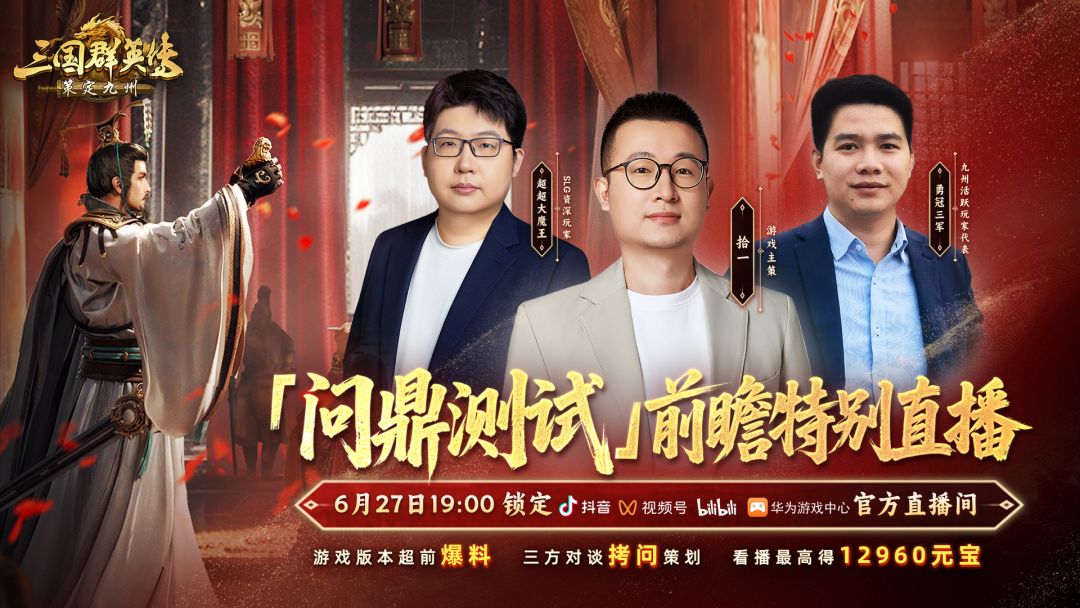6月27日19:00锁定官方抖音、视频号、B 站、华为游戏中心直播间,我们与主公不见不散~