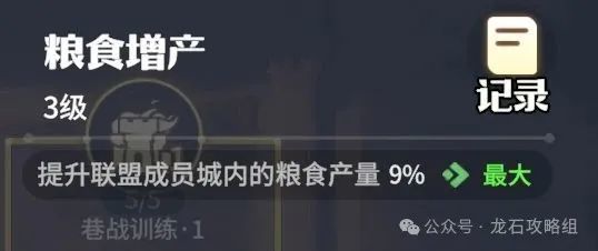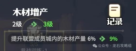 2、粮食、木料增产:作为前期的联盟科技,资源是玩家开荒的重要资源,资源增产将是发育的关键。