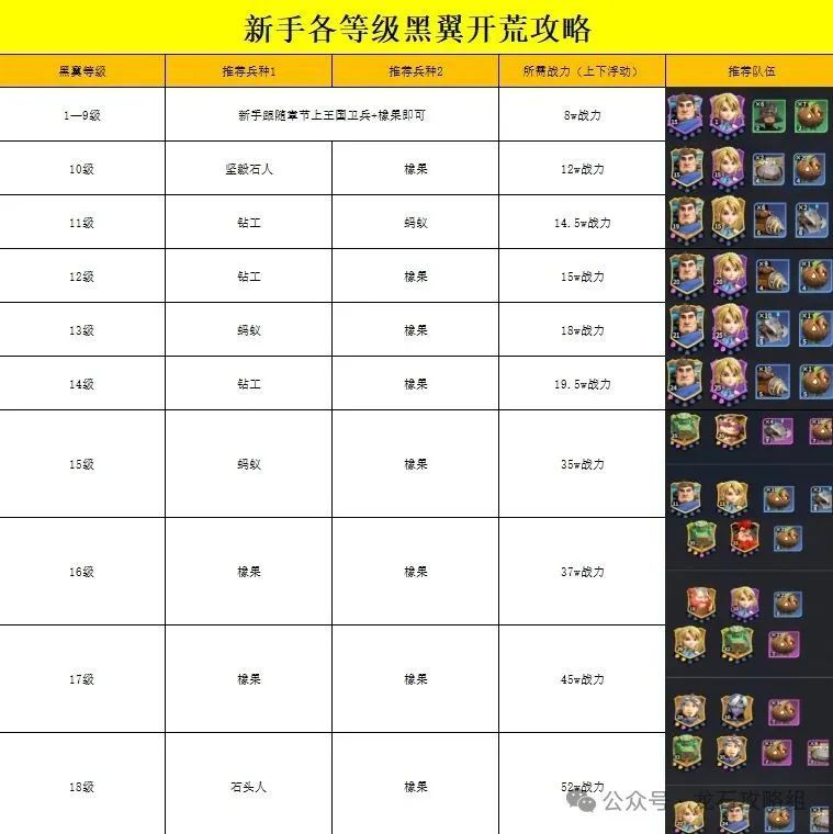 01开荒队伍搭配以及兵种调整给大家推荐几档比较好用的第一天开荒阵容