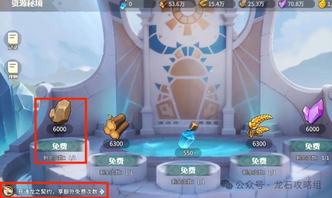 04开荒资源获取前期 10 堡以后,主要是缺铜矿,以下有几个快速获取石头的方式1.资源秘境(龙巢建筑)每日免费1次铜矿资源(开通龙之契约2次),后续需要花金币购买次数,平民建议拿3-5次,氪佬建议前期开荒拉满次数