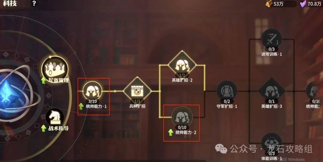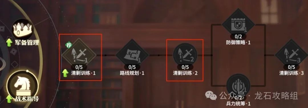 战术指导我建议前期优先点清剿训练,其他科技全部1级即可