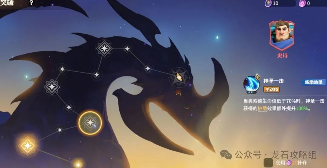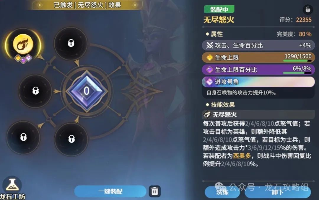 3.龙石英雄到达 15-25-35-45-55 等级时会开放龙石凹槽,每个龙石可增强英雄属性,触发专属套装效果还能增幅英雄技能