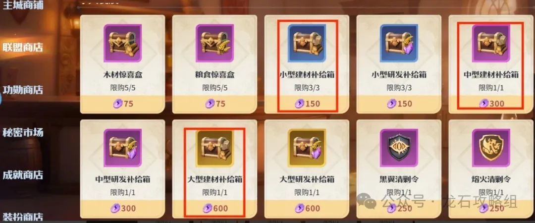 2. 联盟商店联盟商店大中小建材箱子建议优先买满