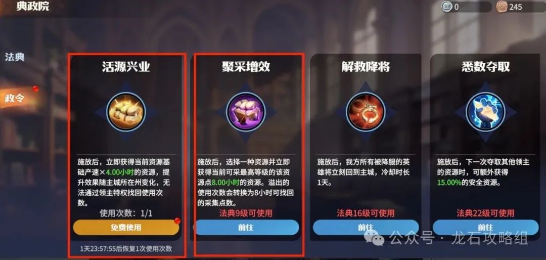 5. 政令内政官中的典政院可颁布政令获得资源,里面包括铜矿,前期主要的政令点数还是给活源兴业以及聚采增效