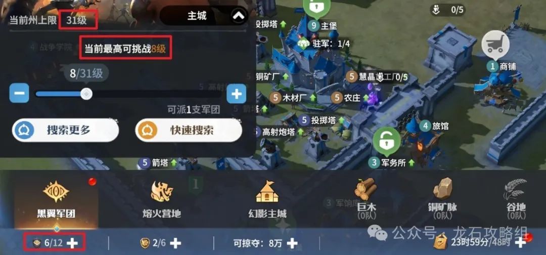 7. 幻影主城可以寻找幻影主城,通过打败其他玩家的幻影主城来获得铜矿以及其他资源,每日必肝