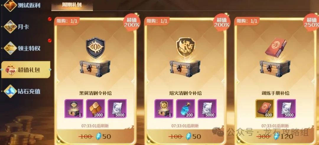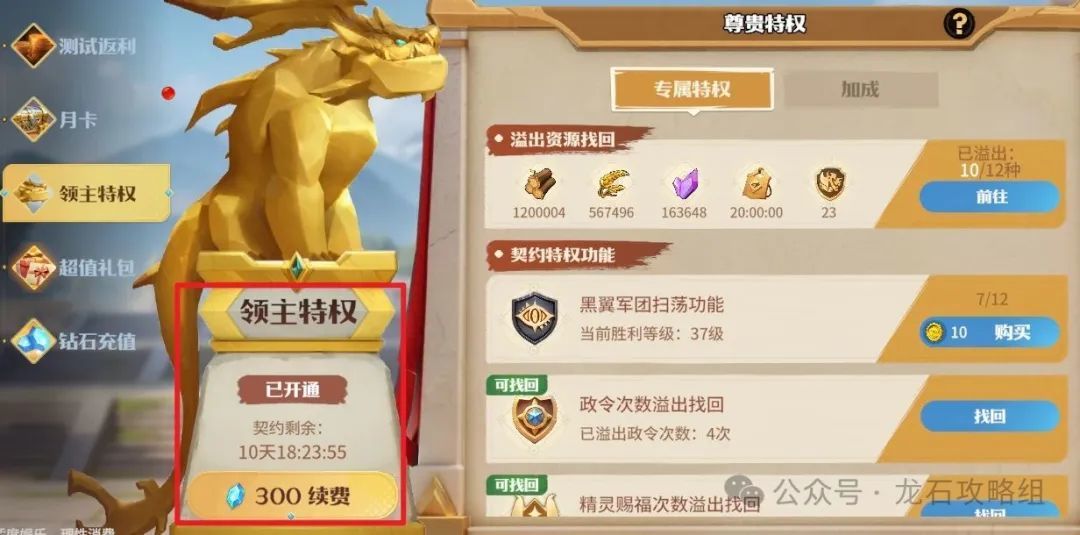 领主特权购买后多项资源福利加速开荒