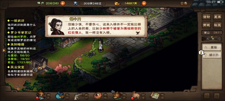 主角卡90级了开始做主线,果然还是过主线有意思,还遇到了最终boss,但是这几个人的b格怎么这么高,比主角待遇还好,这个武评系统能不能做出来,比如少林和太乙的这俩,做成npc,让主角去比试刷新排名,顺便掉点奖励