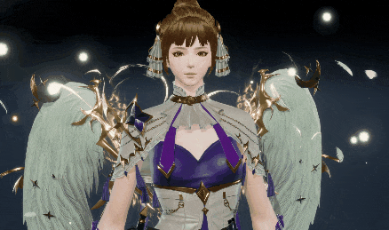 米白小马甲配深色短裤,利落剪裁显精干,紫色腰带蝴蝶结绑带添俏皮。背后同款光翼放大号!淡绿羽翼缀神秘符文与蓝紫飘带,跑动时如驾驭星河。