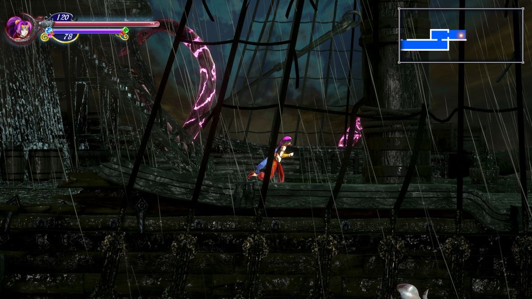 但《赤痕》战斗表现的很多地方放到今天都显得很别扭,例如本作何老恶魔城一样只有后跳没有冲刺,且后跳没有任何无敌帧,这就让玩家缺少了一个快速前冲的移动手段,只能通过快速拉方向然后后跳做弥补,操作上要麻烦不少。
