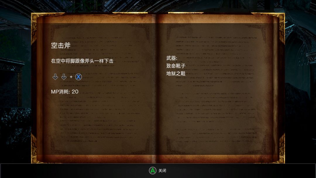只不过,本作中武器的战技并没有强硬的解锁机制,你拿到一把武器的时候就可以搓出其所有的战技,只不过怎么释放其技能游戏内并没有明说,而是塞到了地图各处的书架中,通过与它们交互获知武器的战技释放搓招按键。但由于本作中的战技是和特定几把武器而非武器类型进行绑定,玩家获知到的战技很多时候并不能对上当前的武器与流派使用,所以战技的表现在我看来并不算好——建议是拿到心仪的武器直接上网查攻略算了。