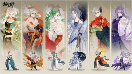 《指间山海》的国风美学不仅体现在画面风格上,更渗透于角色设计的每一个细节。游戏以“考据式创作”为理念,将《山海经》文献与现代审美融合,塑造出兼具文化厚度与视觉张力的角色群像。