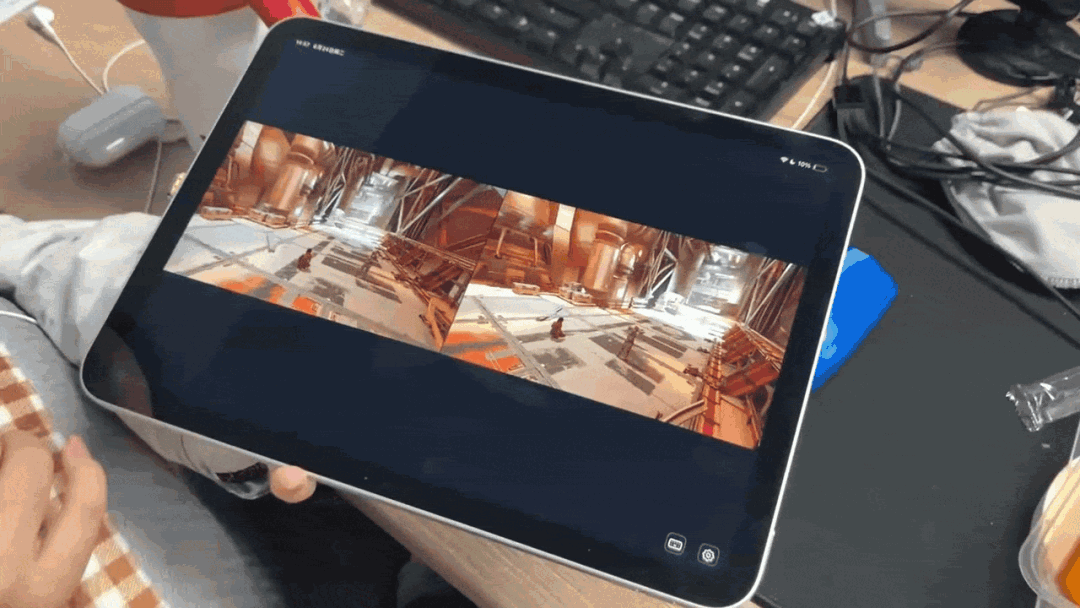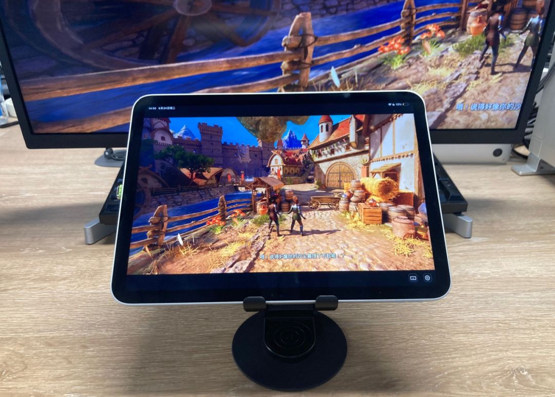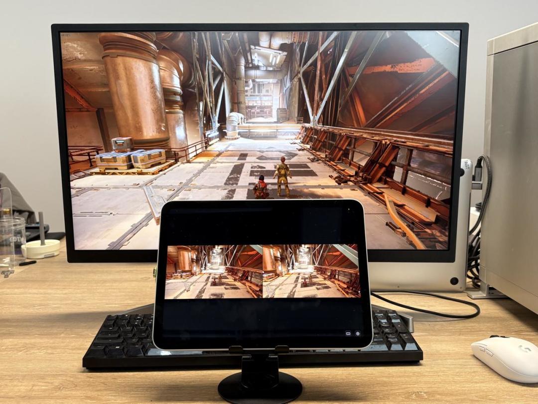 进入《双影奇境》后,显示器已经显示其中一名角色视角的画面了。平板因为抓取的是电脑整个画面(显示器与虚拟显示器组合的完整画面),依旧是2名角色的分屏画面,且画面较小。不过没关系,只要简单动下手指操作下就能单独显示另一名角色视角的画面了。