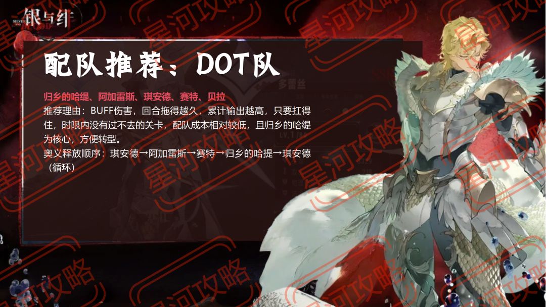 推荐理由:BUFF伤害,回合拖得越久,累计输出越高,只要扛得住,时限内没有过不去的关卡,配队成本相对较低,且归乡的哈缇为核心,方便转型。