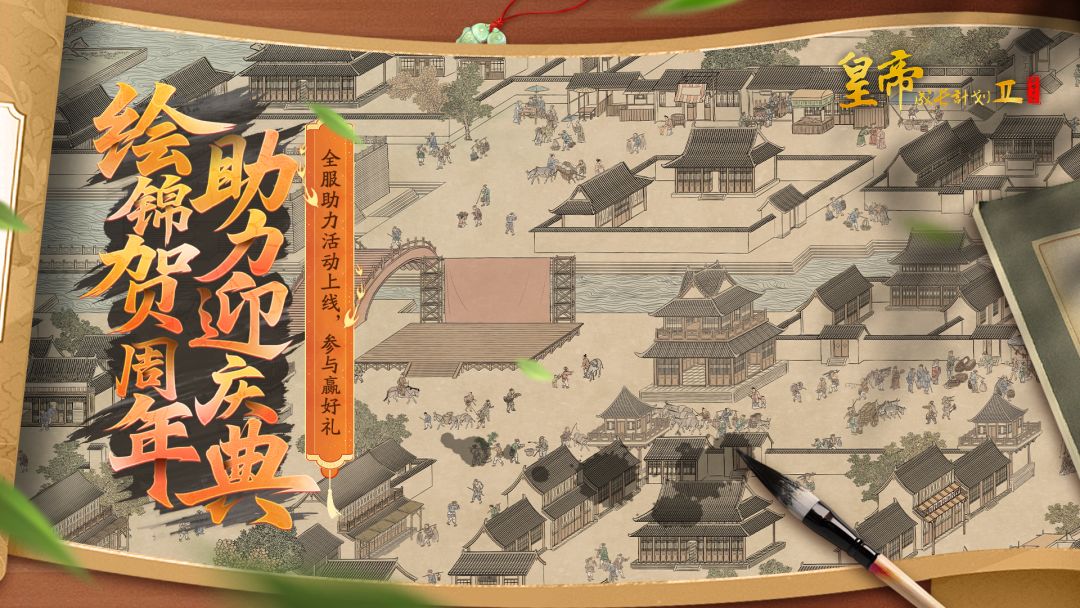 前往《皇帝成长计划2》游戏,点击主界面周年序章-天工绘锦即可直达活动界面