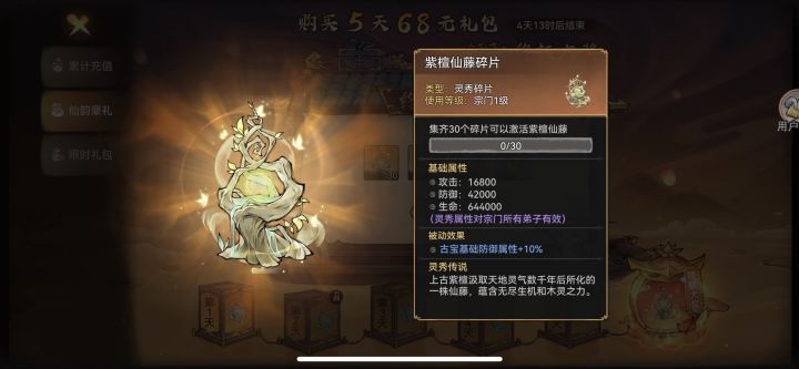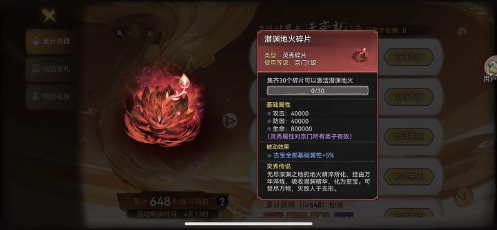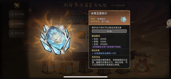 这时候5天68一共340➕功法198,后面缺的空头你只要补两个月卡,或者刚好能买一期128的混沌你就能到648,这时候能得到如图所示3个灵秀古宝 以及5碎片(算了340就够了 我看错了648档就5个红碎片 后面还是要山海换)