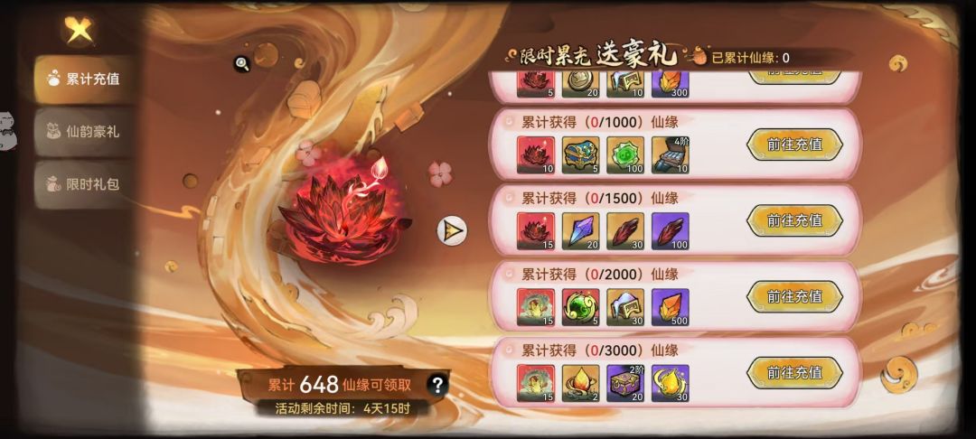 所以给联动区还没开的玩家低氪玩家们一个建议,当你等级到但是你还不想充想后面充的时候先不要去建须弥塔,等有累充活动或者你想买烟花想买功法道兵的时候你再去开。