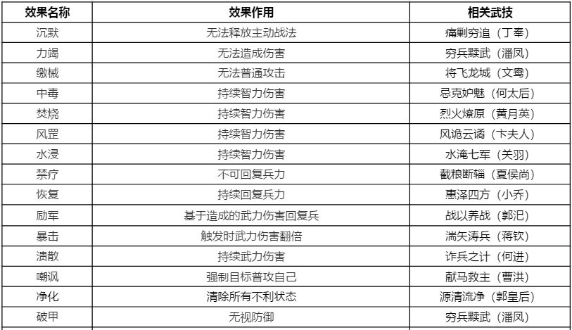 2、潘凤的拆技穷兵黩武也属于PVP可以使用的技能,但是因为有一半的概率让自己力竭,也就是无法进行攻击,因此需要搭配特殊的队友。紫将里面甘夫人的主将技能是净化,但是她的整体属性太差了一般也上不了场。要配的话需要等一手橙将华佗,华佗的1技能是主动技青囊,可以净化队友的debuff。