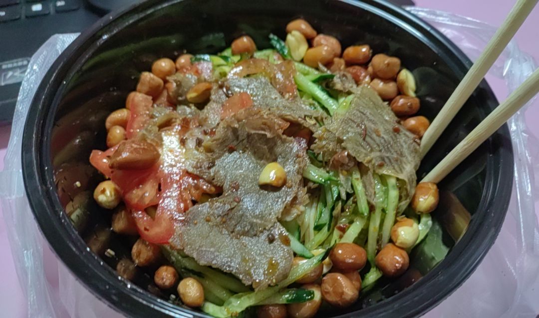 食堂也就那几样还行,比较经典的就是放了好几勺花生米的牛肉凉面,还不错哈哈!热奶宝也可以,还有粥,还有烩菜。