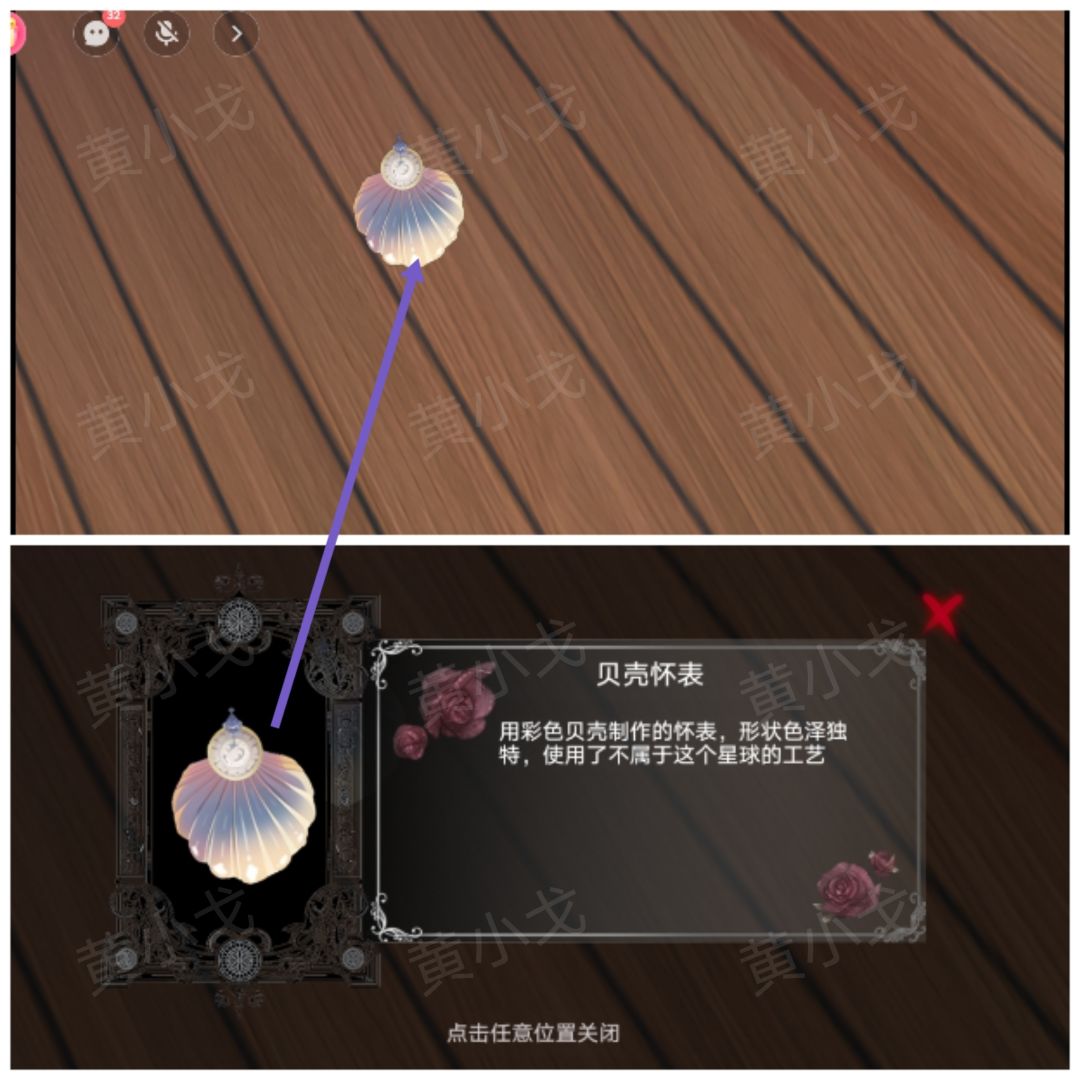 1.拾取地上的【贝壳怀表】