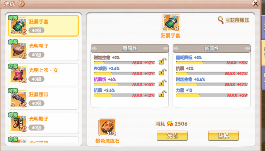 在主城找到装备洗炼 NPC,打开洗炼界面后放入目标装备和洗炼材料。每次洗炼,装备的原有属性会随机变更,包括属性类型和数值大小。若洗炼出的属性不理想,可继续操作覆盖之前结果。使用 “高级洗炼石” 时,可锁定 1 - 2 条满意属性,让其在后续洗炼中保持不变,不过锁定条数越多,所需材料和金币也越多。