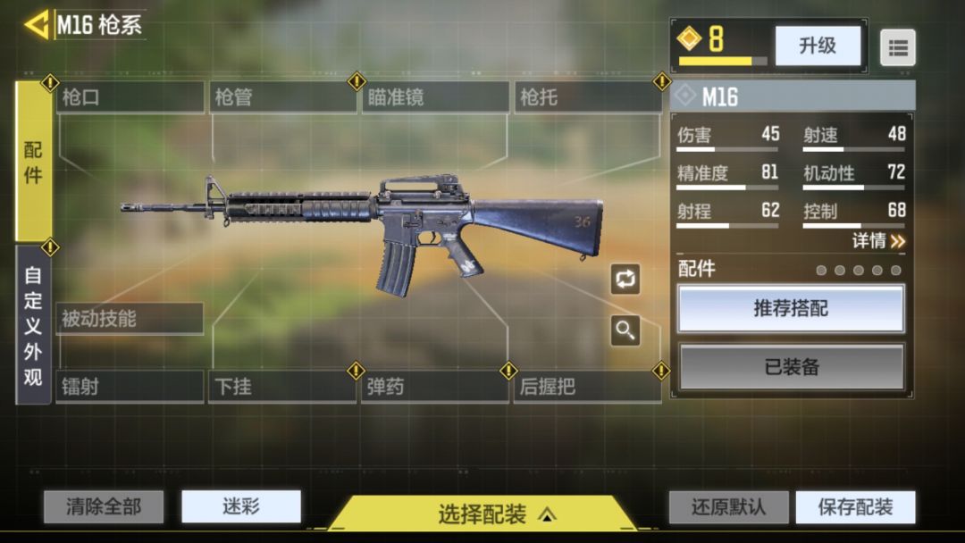 M16从面板上各项数据来看,你不得不说这是一把神仙级的枪支,因为除了射速在突击步枪中垫底,它的其他属性各个名列前茅。但是当大部分玩家冲着面板去体验M16的时候却发现了,M16是一把半自动步枪,它只能三连发射击。如果你用这把半自动步枪很难击杀敌人,那么接下来的攻略想必会对你有所帮助。