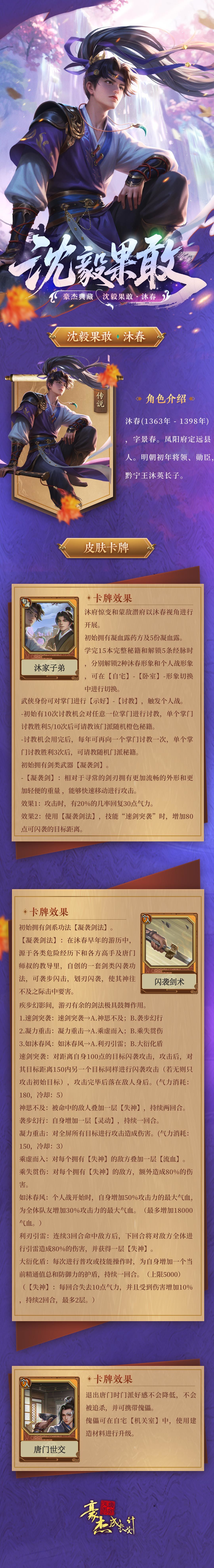 卡牌爆料丨沈毅果敢·沐春,限定传说皮肤卡公开!
