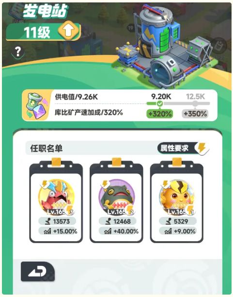 建议使用“电系”库比任职发电站,最好选择高品质高星级的库比,工作效率会更高噢!