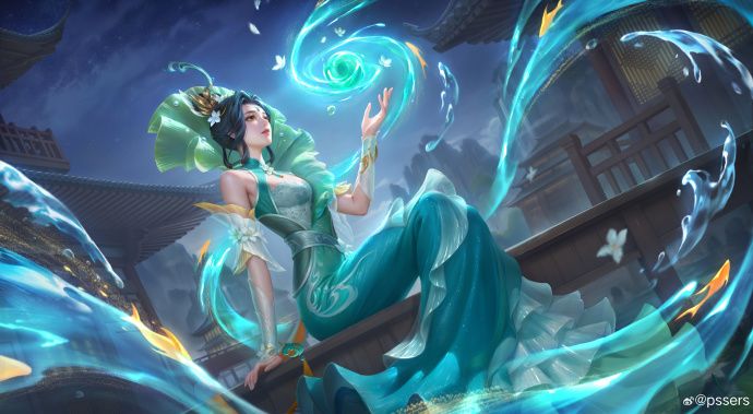 该皮肤以白玉荇菜和自然流水为灵感,将层叠的叶片和水波的纹理拟作衣袂。通过东方幻想式风格,塑造出甄姬化身“水中仙子”的空灵形象。