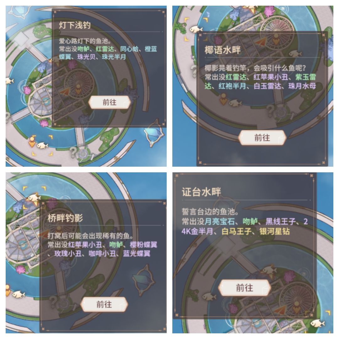 最后附上每个鱼点有什么鱼种!希望大家都快快解锁!(这回情缘岛的比较好钓,相比于前两个地图)主包今天玩了下,就剩最后一条银河星钻没出货啦~