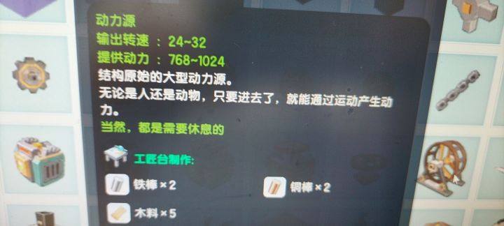 因此,生物轮就是代替蒸汽机和内燃机的不二选择,生物轮可以提供一定的动力和转速,当然我不建议放动物进去,毕竟动物会偷懒,而我们如果电击动物给动物提神又很容易电死动物,到时候又要重新抓,得不偿失。与之相比,将玩家放入生物轮就显得更有性价比了,玩家不会偷懒,要是偷懒你可以拿雷电法杖电击他,而且不怕电死,因为可以复活嘛,综上,我们可以邀请朋友进冒险房间,用脉冲弓指着他们让他们进生物轮,然后把四周围起来,让他们有进无出,这样我们就可以做的生态发展两不误了。go~work!